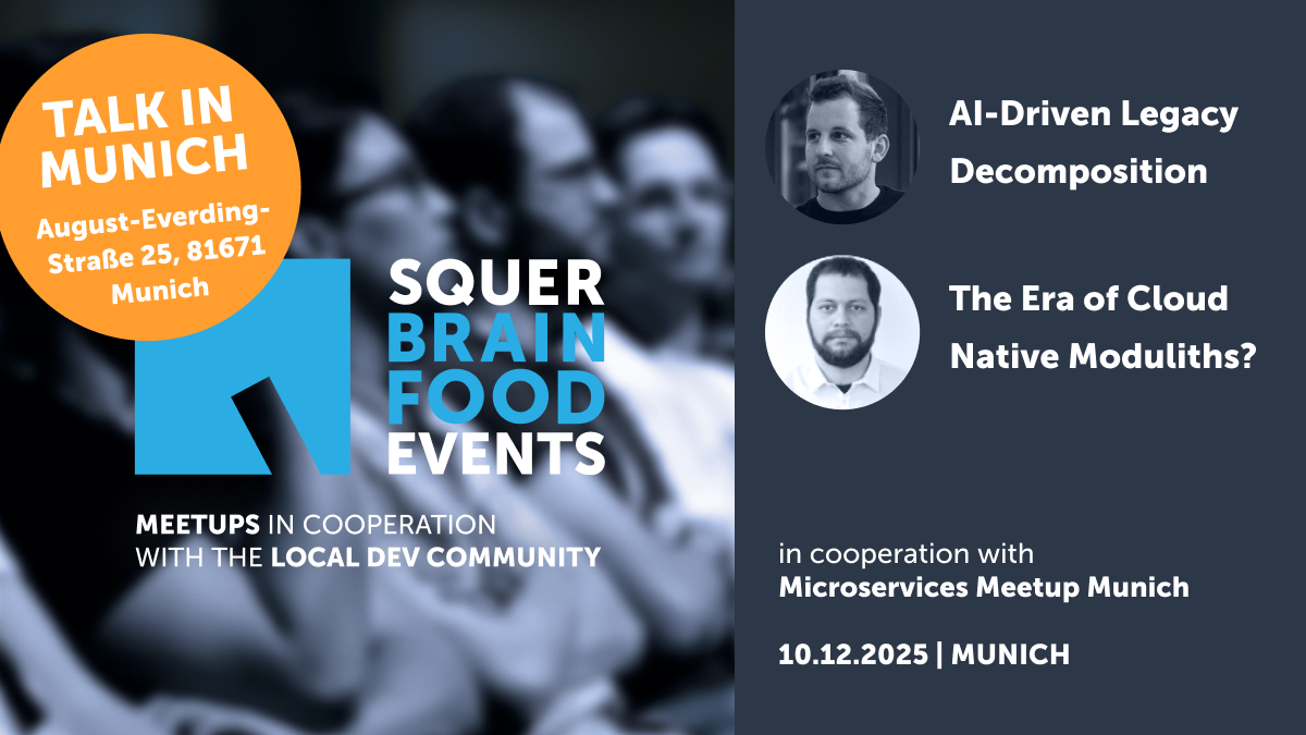 We keep you up to date on software development trends, solve complex software architecture challenges, and discuss agile methods and practices with you. Subscribe to our YouTube channel or join our meetup group to not miss any brainfood talks!